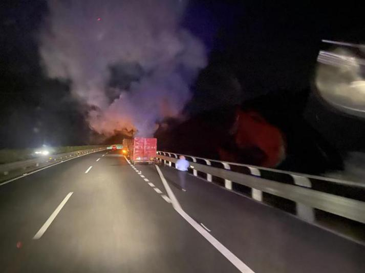 10 月 10 日 18 時(shí) 19 分,高建養(yǎng)護(hù)公司拿口養(yǎng)護(hù)站接到 12122 高速監(jiān)控中心電話(huà),告知寧光線(xiàn) AK146 位置有一輛貨車(chē)起火,情況十分緊急,需進(jìn)行搶險(xiǎn)支援。接到險(xiǎn)情命令后,黃賢興副站長(zhǎng)立即組織站里員工周宜清、姜威,第一時(shí)間駕駛水車(chē)趕赴現(xiàn)場(chǎng),積極配合交警、消防等部門(mén)做好交通現(xiàn)場(chǎng)安全布控工作,并出動(dòng)水車(chē)協(xié)助消防人員進(jìn)行滅火施救。經(jīng)過(guò)近2個(gè)小時(shí)的搶險(xiǎn)救援,事故處理完畢,該車(chē)道恢復(fù)正常通行。