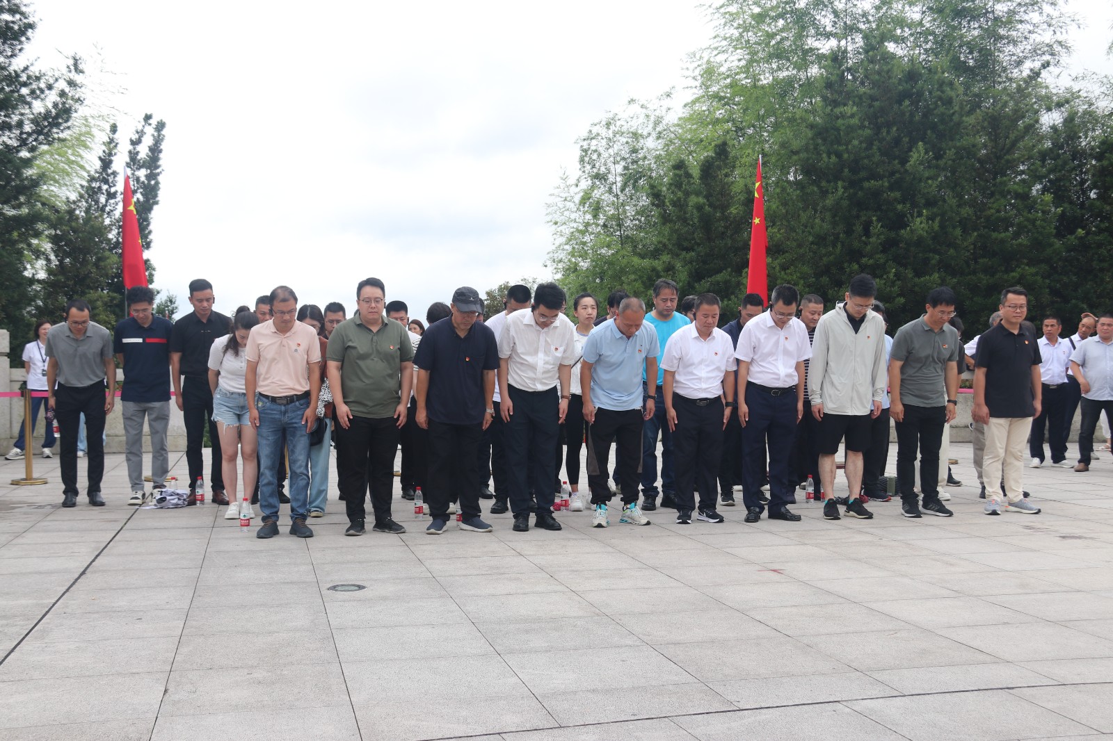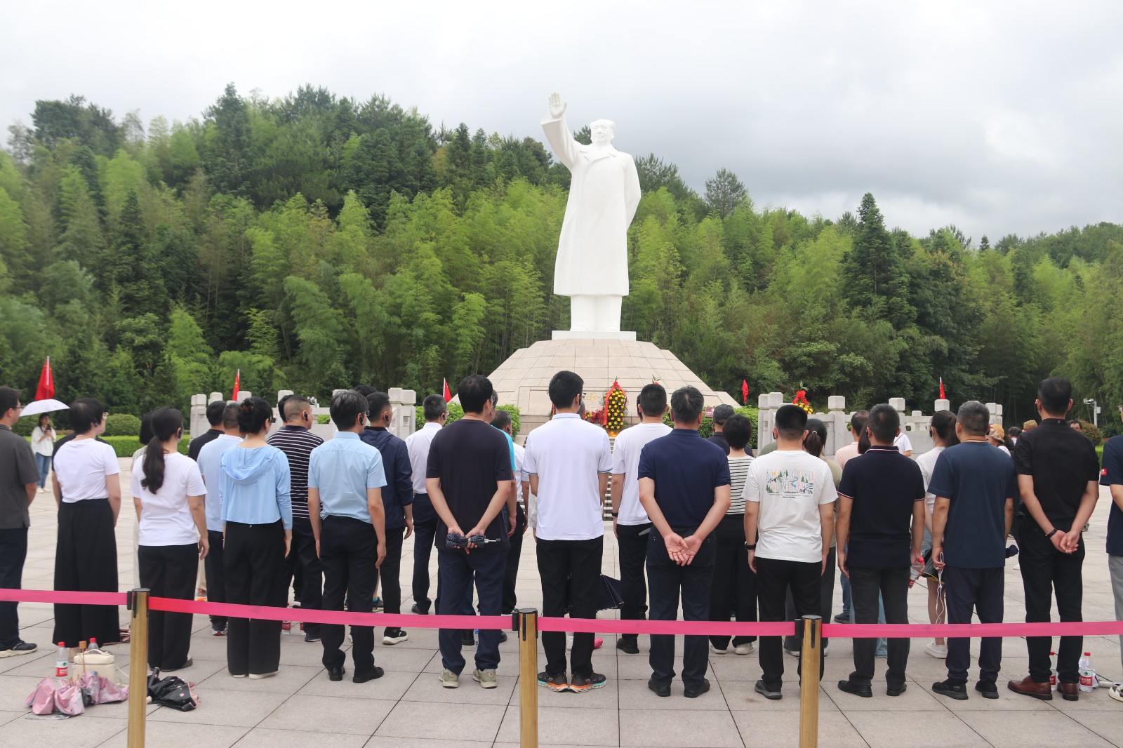 在毛主席紀(jì)念園,全體黨員向毛主席雕像敬獻(xiàn)花籃,鞠躬致敬,環(huán)視毛主席雕像一周,細(xì)細(xì)品讀基座上鐫刻的大氣磅礴的毛主席詩(shī)詞,深切緬懷毛主席為新中國(guó)的建立和人民的解放事業(yè)作出的豐功偉績(jī)。